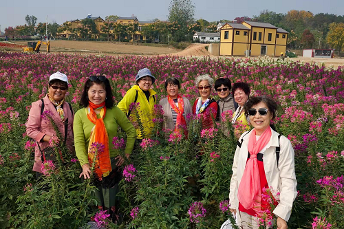 清晨出发,秋高气爽,响晴薄日,万里无云。秋日里的木兰花乡景区绿树成荫,花香四溢,清新的空气,满目的绿意让人心旷神怡。老同志们精神饱满的漫步在青山绿水间,兴致盎然,三五成群,或与彩虹花田合影,或在梯田湖畔小憩,或置身于古色古乡的房舍中,或开怀在欢鸣不绝的鸟语林,享受着大自然深秋原生态的韵味。在欣赏美景的同时,老同志们持续研讨思想,畅谈科学院的开展变化,感慨祖国建设开展给人们带来的美好生活体验。